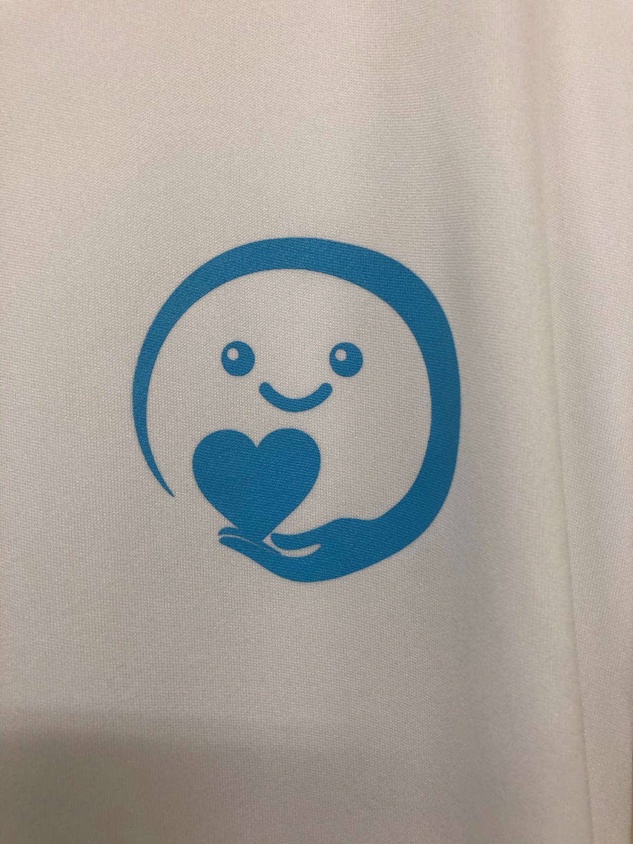「誠意とユーモアを携えて」我が社のシンボルマーク、オーちゃんをプリントした、シンプルなスポーツTシャツです。